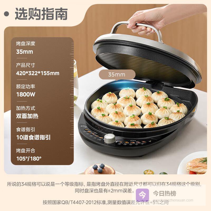 推荐理由:这款电饼铛不仅具备卓越的加热性能,还注重健康与安全,完全符合现代家庭的烹饪需求,是享受美味的理想选择。