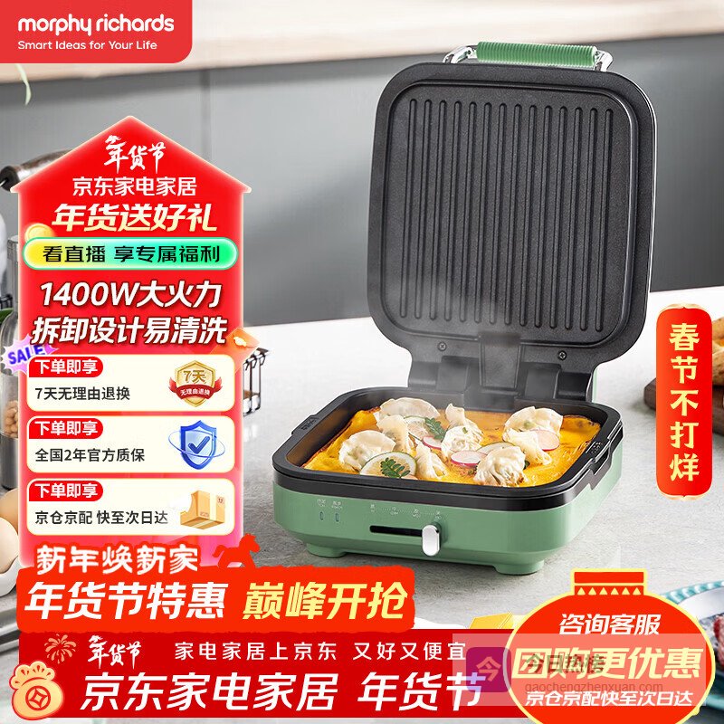 推荐理由:这款早餐机具有双面煎烤功能,1400W大火力,高效处理各种食材,满足您的多样化烹饪需求,让每一餐更加美味。