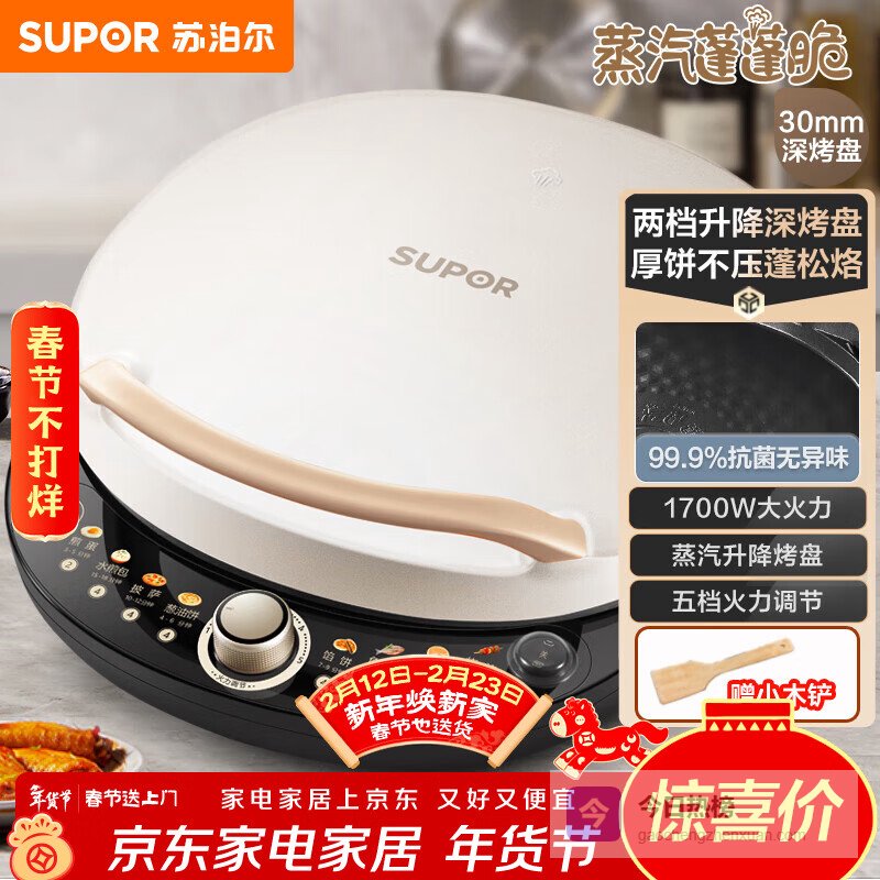 【京东自营】苏泊尔电饼铛电饼档双面加热煎烤机烙饼锅早餐机五档火力可调烤肉薄饼机升降烤盘JD30AQ8¥