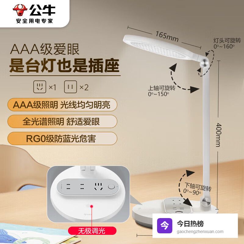 5、公牛国AAA级护眼防蓝光护视力台灯