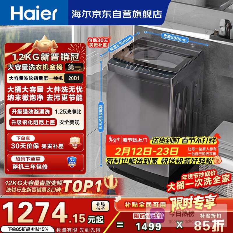 推荐入手:海尔波轮全自动洗衣机12公斤BZ20D1
