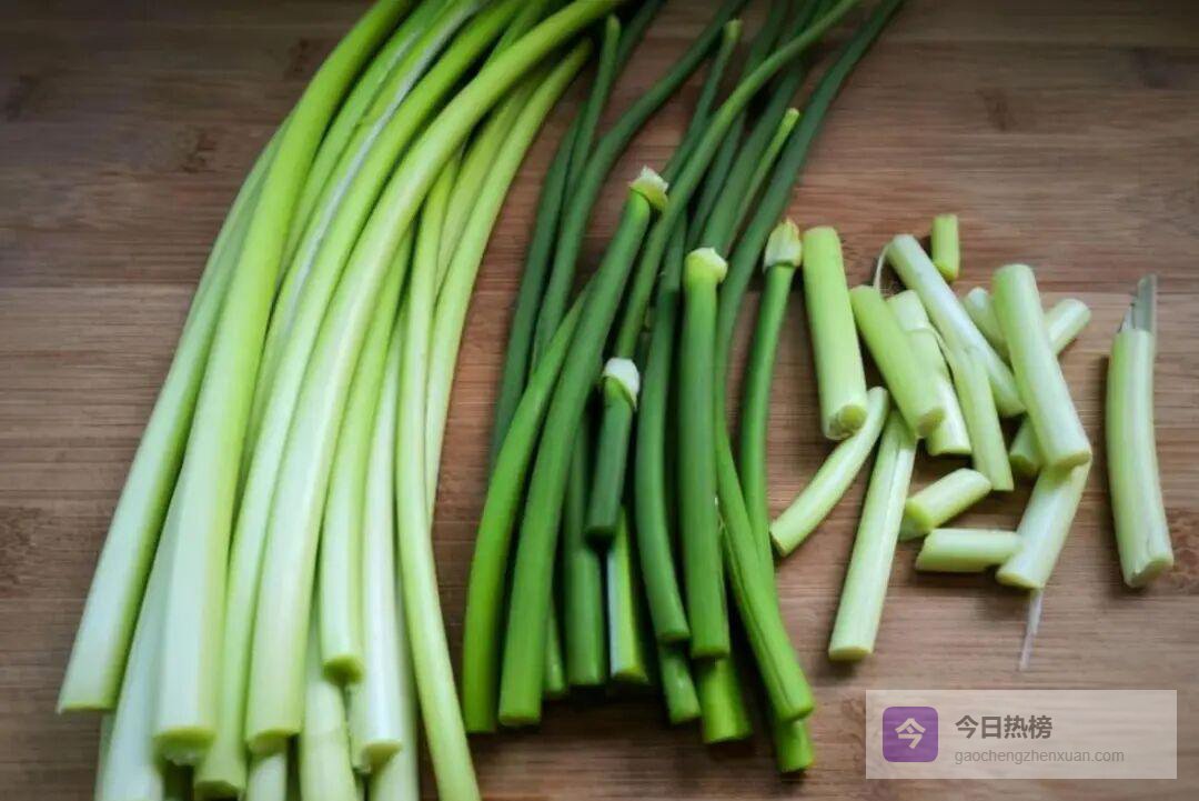 主角:新鲜蒜苔,挑颜色翠绿、粗细均匀、掐之能出水者为上品