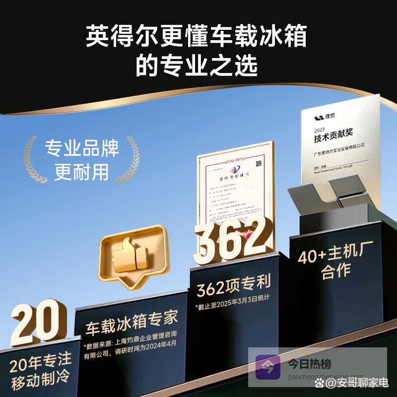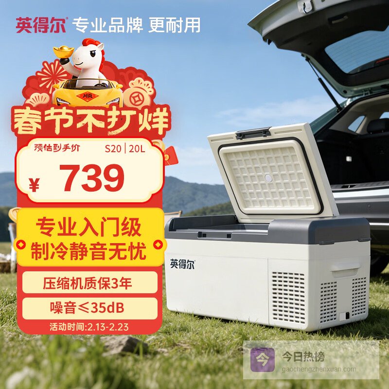 【商品推荐】一:英得尔车载冰箱20L低噪款这款机型把静音控制锚定在≤35分贝硬指标上,不是宣传话术,而是出厂每台都经第三方噪音实验室实测校准。它采用新一代直流变频压缩机,能根据箱内温度变化自动调节功率,在维持-18℃深冷的同时,避免传统压缩机那种“咔哒”启停冲击声。配合加厚隔音棉与底部四点硅胶缓冲脚垫,有效阻断振动向车身传递。