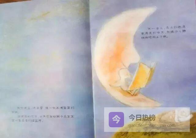 在很高的地方,小月亮在给两个鸟宝宝读一首柔柔的摇篮诗。