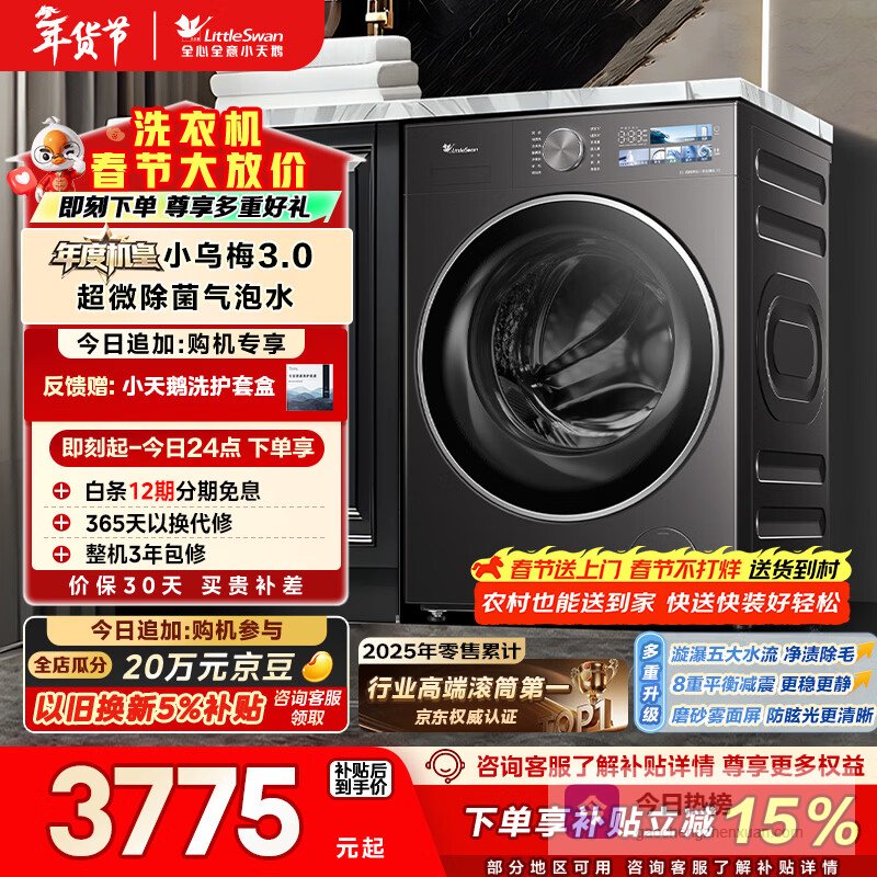高奢版设计不仅提升了视觉感受,更赋予了洗衣机高效清洗效果,满足对品质生活的追求。在享受国家补贴及以旧换新政策的同时,消费者能够以更具经济实惠的方式选择这一优秀产品,享受科技带来的高效、便捷和舒适。