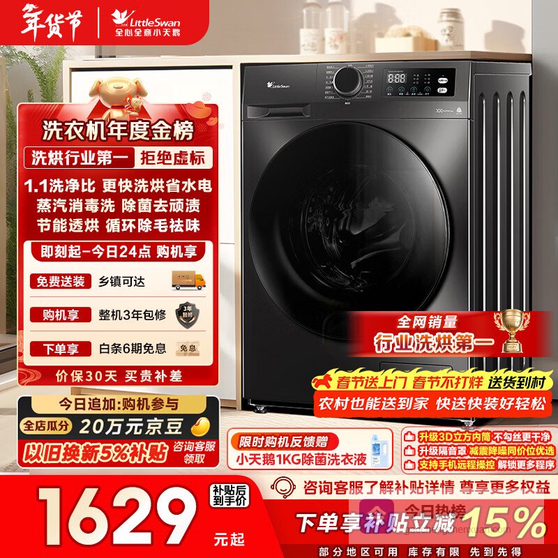【京东自营】小天鹅滚筒洗衣机全自动家用带烘干洗烘一体12KG超薄大容量TD120V098WDT以旧换¥