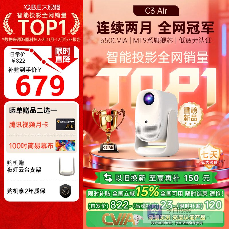 推荐入手:大眼橙C3云台投影仪 高清1080P便携影院
