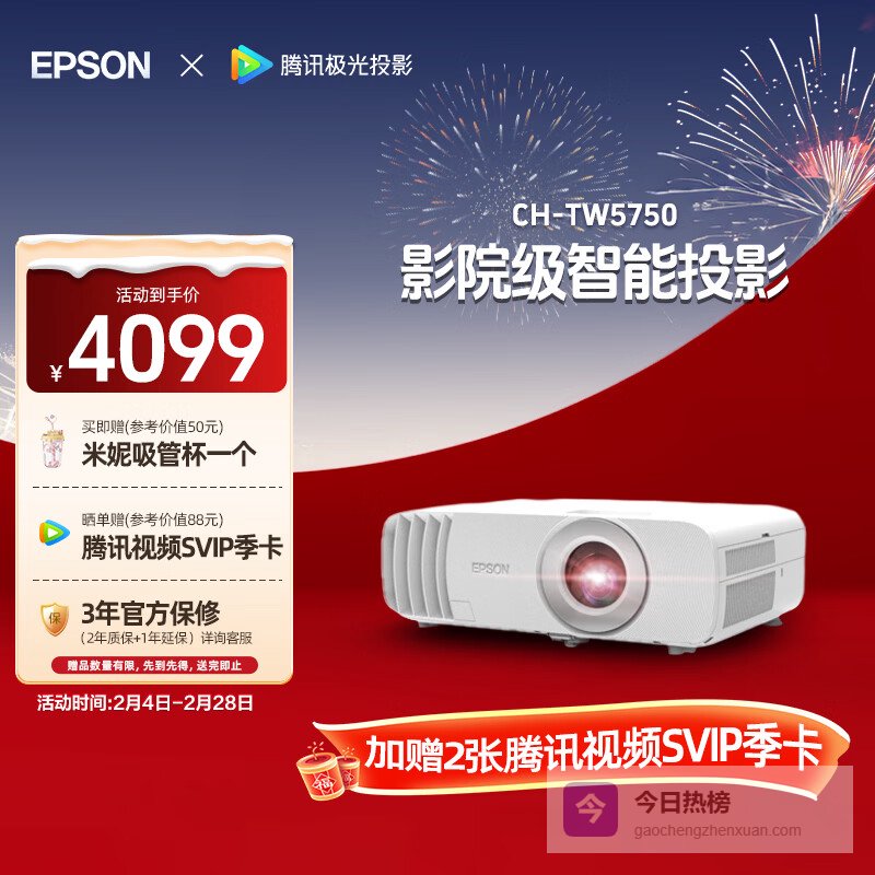 【京东自营】爱普生CH-TW5750【5700升级款】3LCD家庭影院智能投影仪¥