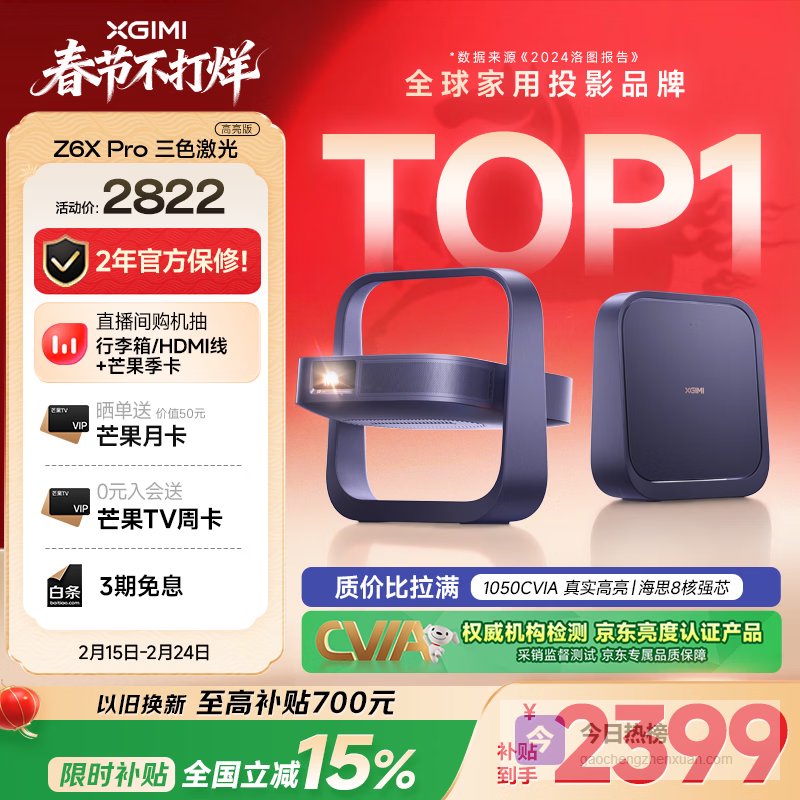 【京东自营】极米Z6XPro三色激光高亮版投影仪家用轻薄投影机高清一体式云台2年质保一级能效国家补贴¥