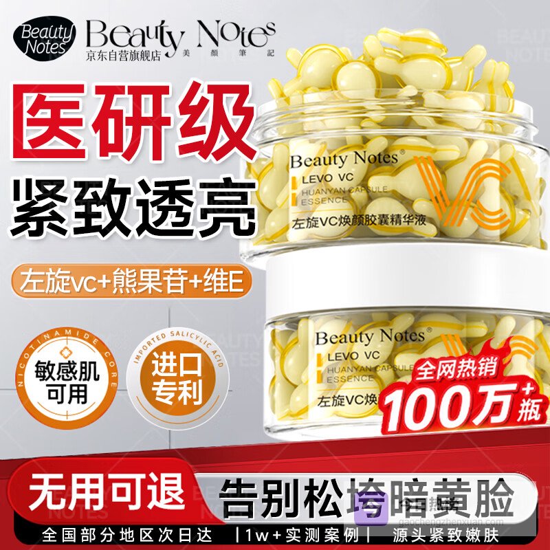 BEAUTY NOTES左旋vc精华液抗皱紧致烟酰胺维c面部精华油美女白淡斑50粒¥