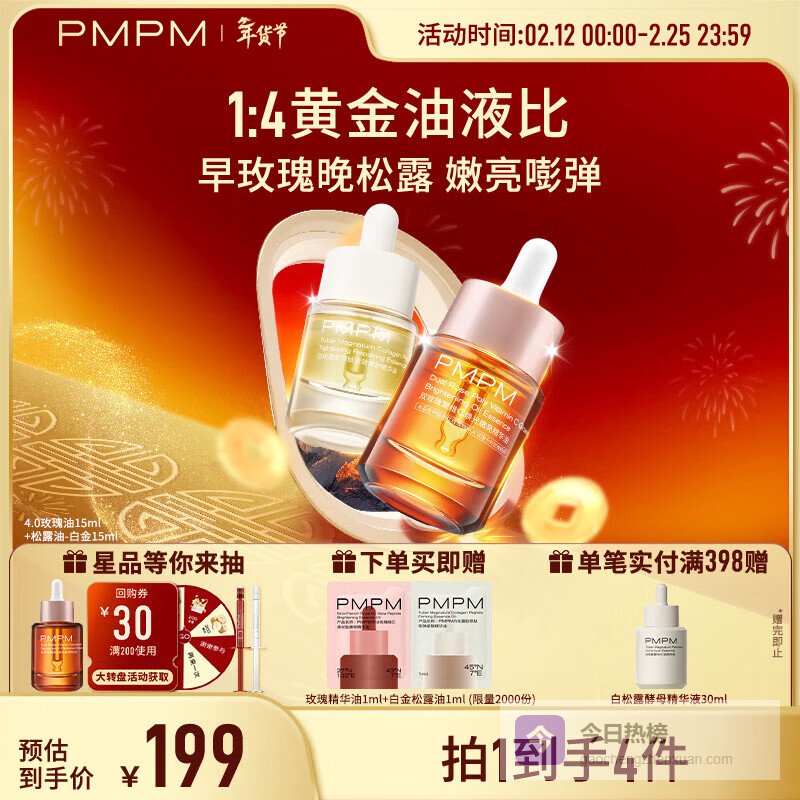 PMPM玫瑰精华油提亮松露气泡油抗皱紧致保湿套装 情人节礼物 送女生 【嫩亮促胶原】早玫瑰晚松露共30ml¥