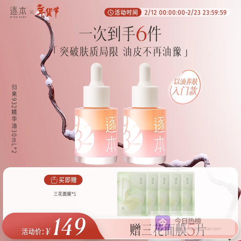 逐本归来白茶玫瑰焕颜双层精华油30ml*2保湿舒缓精油以油养肤新年礼物¥