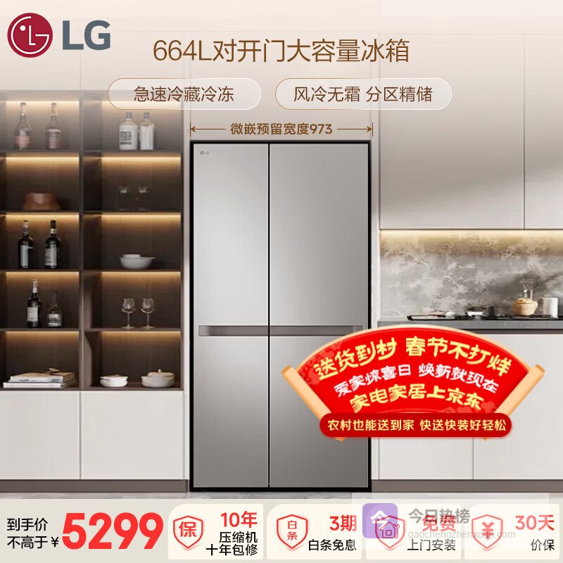 3、LG664L这款LG冰箱配备了变频压缩机,能高效节能、保持低噪音,运行时只有36dB左右,几乎听不到声响。双风冷无霜技术确保冷气循环均匀,减少结霜,还能长时间保持食材的新鲜和原味。它还设有多个储存区,比如专为蔬菜和肉类设计的抽屉,方便食材分类存放。