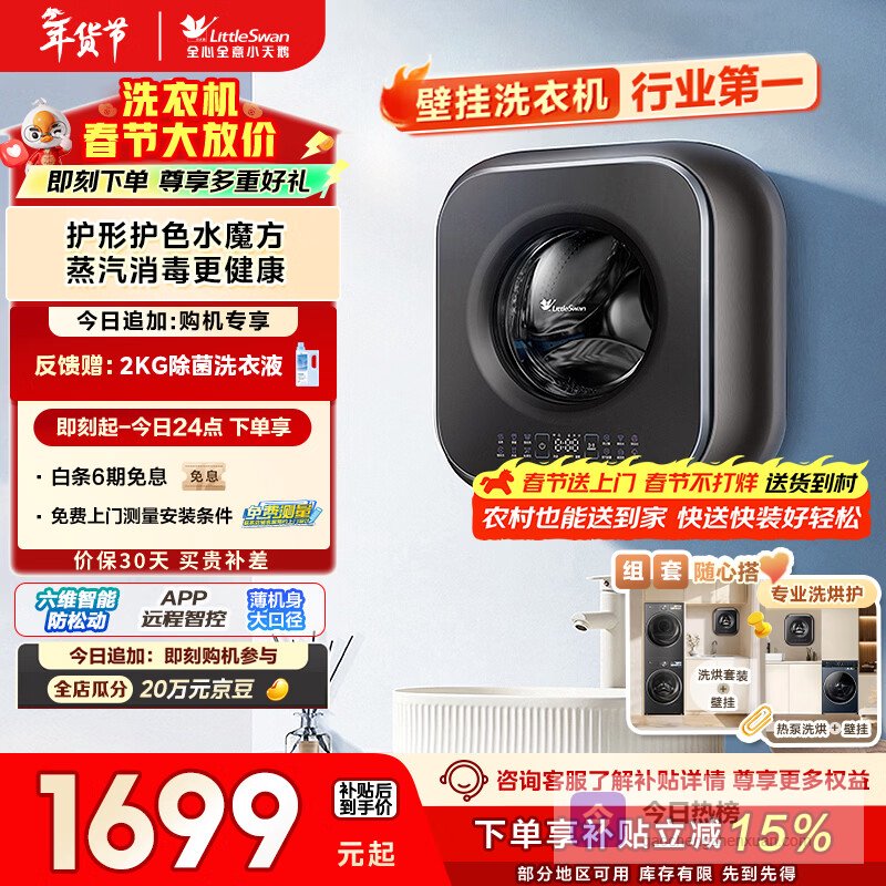 智能化洗护体验:具备自动匹配洗涤参数的智能系统,助您节省时间与精力。根据不同衣物的重量调节洗涤方式,轻松应对各种家庭需求。同时,超薄的壁挂设计,不占用空间,极大优化您的家居环境,非常适合小家庭或公寓的使用,智能与美观兼具,让清洗变得轻松愉悦。