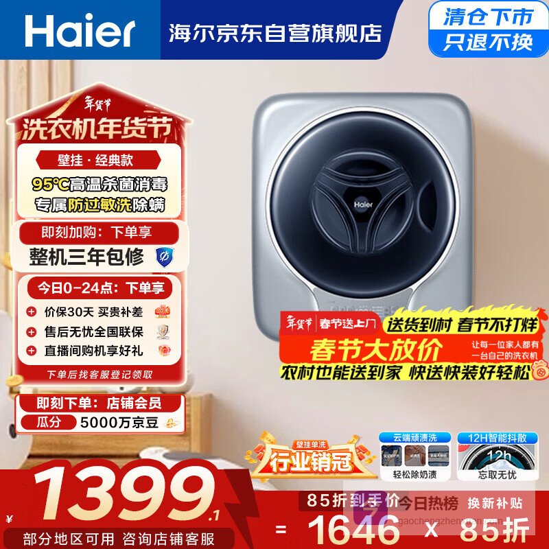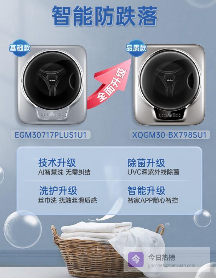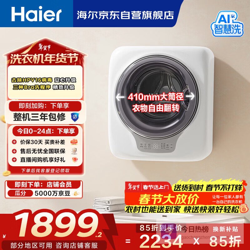 【京东自营】海尔壁挂内衣洗衣机小型婴儿儿童内衣裤洗衣机3KG全自动迷你洗衣机一级能效717PLUS¥