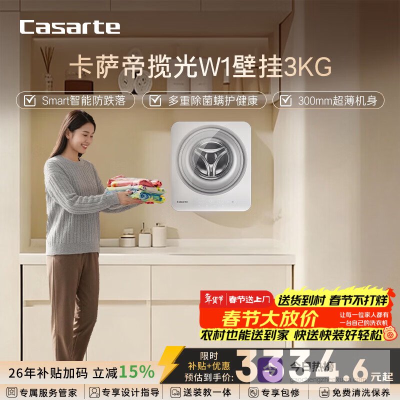 【京东自营】卡萨帝揽光W1壁挂3KG滚筒洗衣机全自动内衣婴儿家电国家补贴15%C33W1U1¥