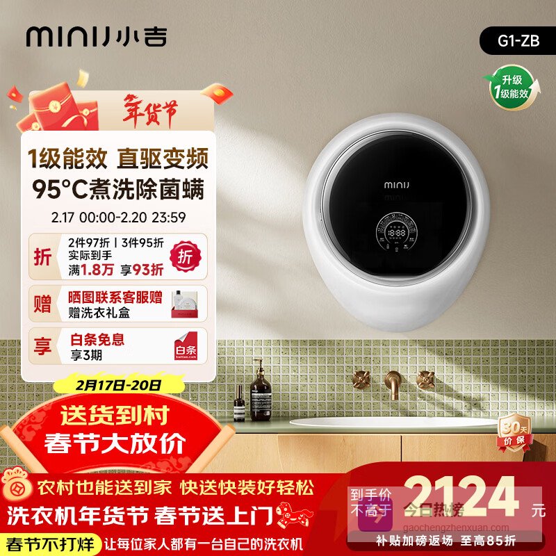 【京东自营】小吉壁挂洗衣机3kg迷你滚筒婴儿内衣洗衣机直驱变频真丝洗护G1-ZB¥