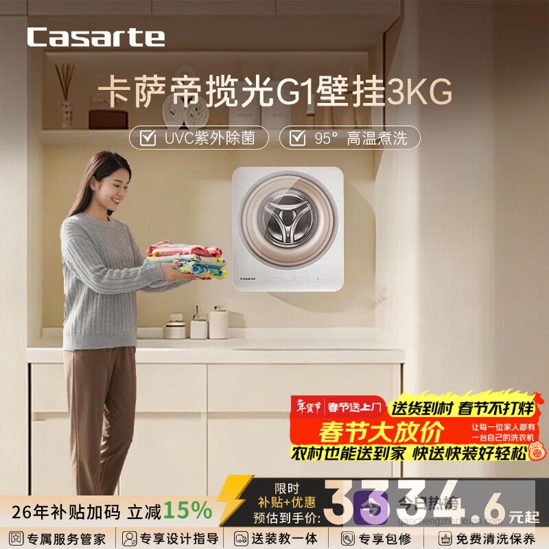 【京东自营】卡萨帝揽光G1壁挂3KG滚筒洗衣机全自动内衣婴儿家电国家补贴15%C33G1U1国家补贴¥