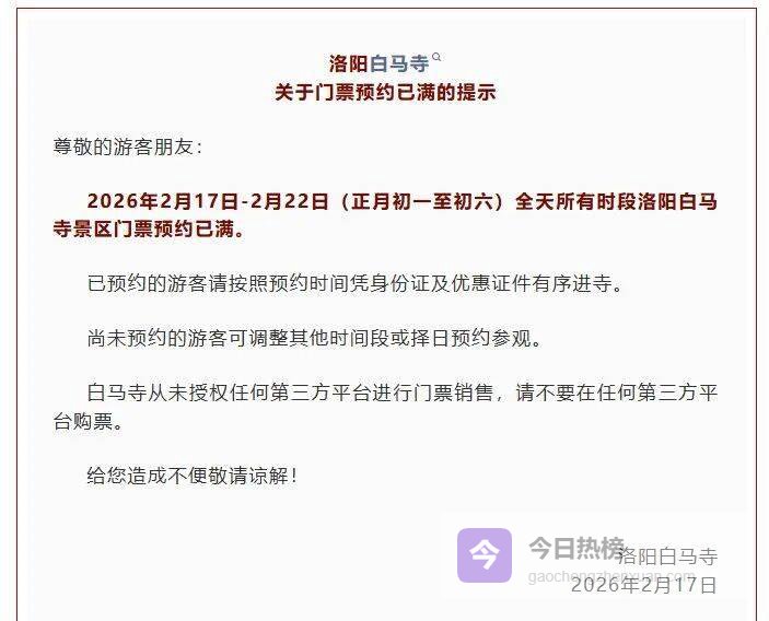 灵活调整行程、错峰预约,或许比在开售前“蹲点”更稳妥。愿每一位游客都能在白马寺钟声里,找到属于自己的新年第一注心安。