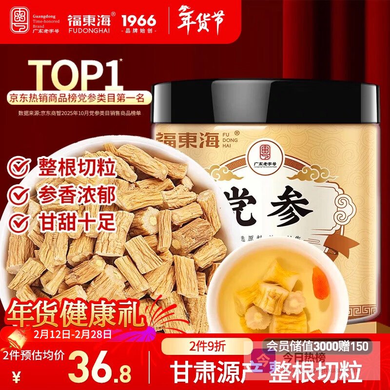 福东海 党参粒100克【整条切段】甘肃道地产地 手工挑选搭中药材黄芽汤¥