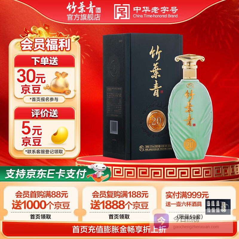 竹叶青酒 汾酒 青享20版 山西杏花村 优质汾酒基酒 露酒 送礼 53度 500mL 1瓶 单瓶装¥