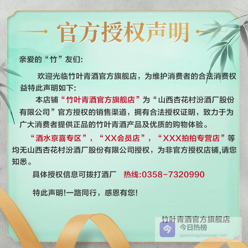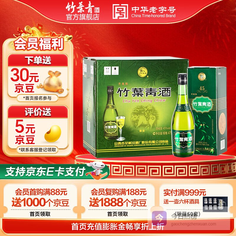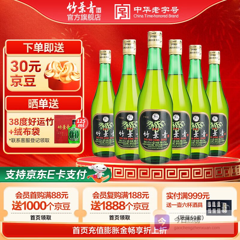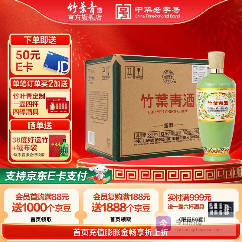 竹叶青酒 荣耀 绿瓶 山西杏花村汾酒 优质汾酒基酒 露酒 送礼 53度 500mL 6瓶 整箱装¥