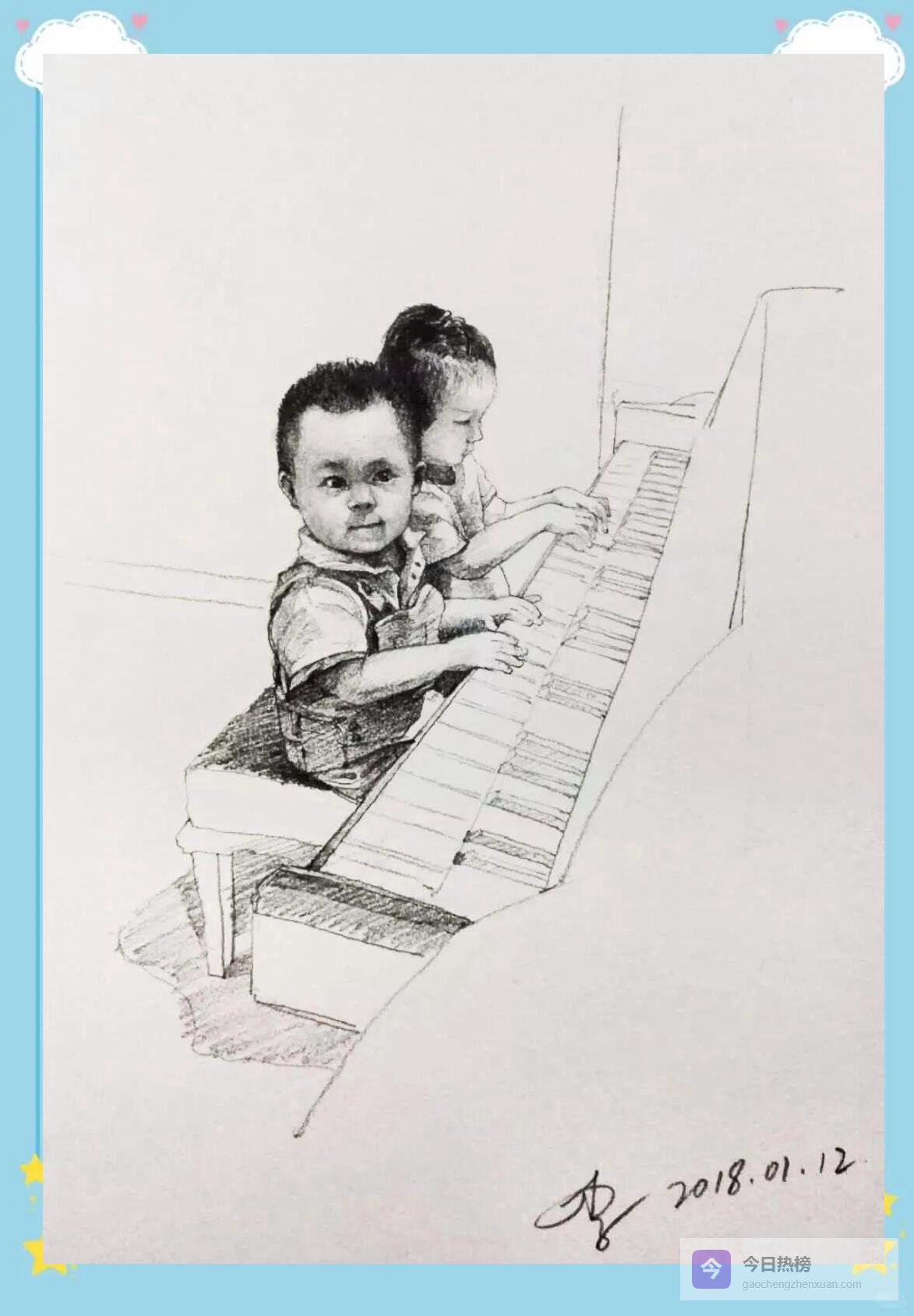 和朵朵姐姐一起弹钢琴,像模像样的,看起来真像那么回事