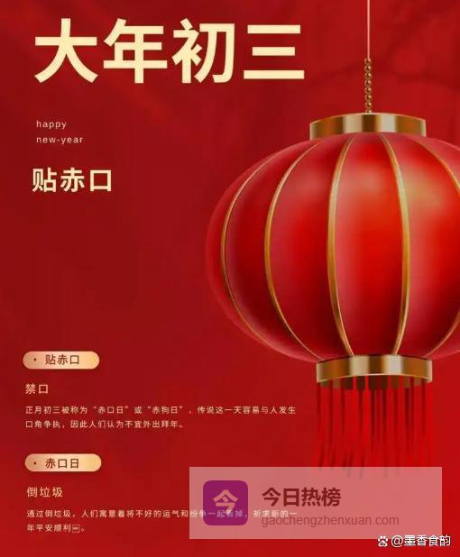 您听过那句老掉牙的顺口溜没?“初一饺子初二面,初三盒子往家转”。还有个更玄乎的说法,叫“初三赤口”。啥叫赤口?按迷信说法,就是这天容易跟人红眼、拌嘴,甚至招来口舌是非。