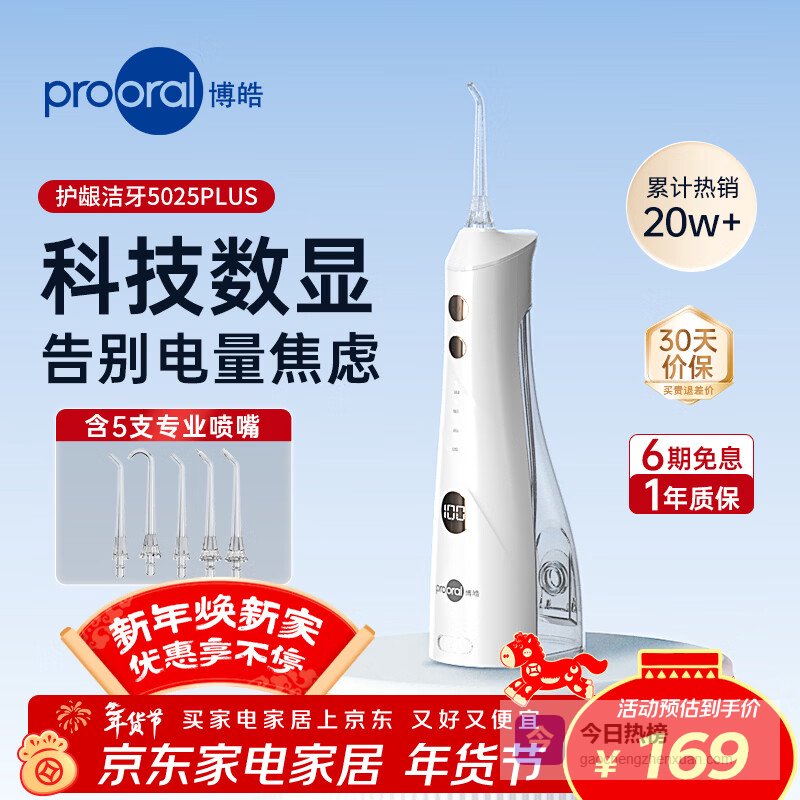 【京东自营】博皓【新年礼物】5025Plus冲牙器手持立式洗牙器带数显水牙线洁牙器象牙白270ml¥