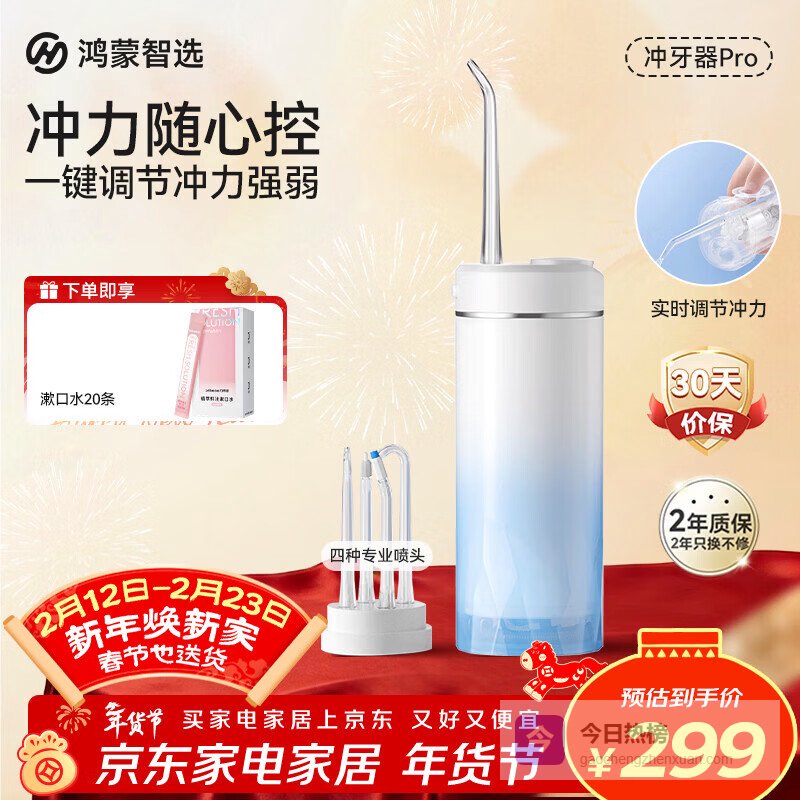 【京东自营】华为智选鸿蒙智选力博得智能冲牙器pro伸缩便携式洗牙器水牙线牙齿冲洗器情侣送男女友生日礼¥