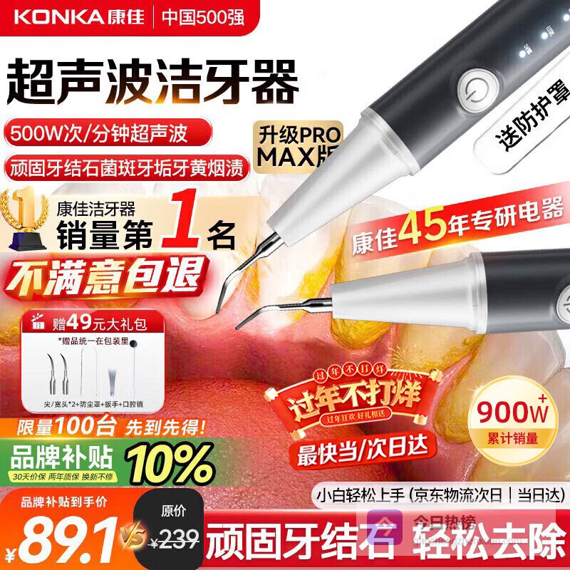 【京东自营】康佳超声波洁牙器机洗牙结石器清除牙齿冲洗神器去黄牙结石医用清洁烟渍茶渍菌斑打磨工具在家京¥