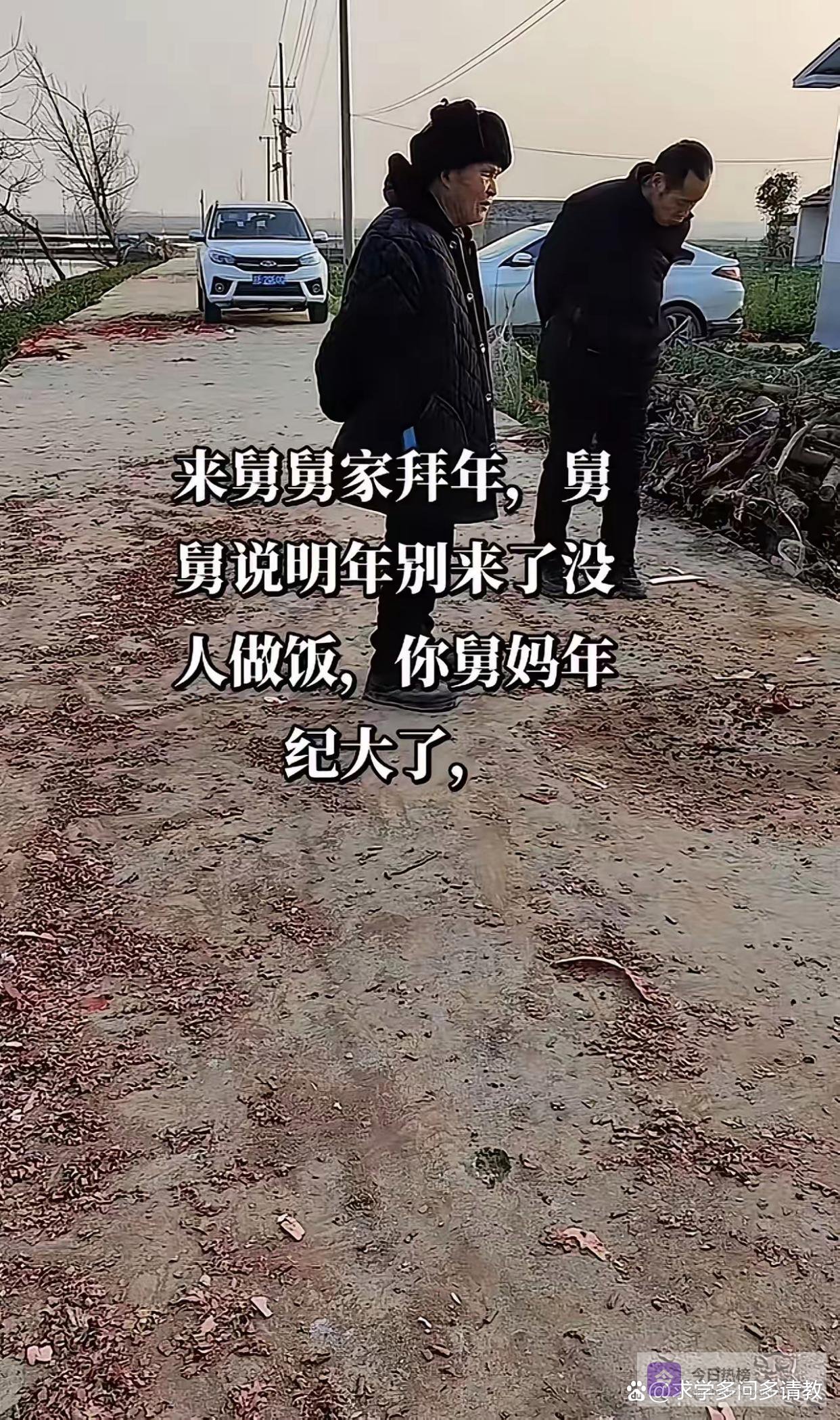 太扎心了!2026年大年初二,35岁的阿强拎着大包小包年货,兴冲冲地推开舅舅家的院门,他以为等待他的会是一如既往的团圆饭、舅妈的拿手菜、还有舅舅那杯永远倒得满满的白酒!可他万万没想到,当酒过三巡菜过五味,舅舅放下酒杯,眼眶通红地哽咽着说出那句“强子,明年……别来了,你舅妈年纪大了,干不动了……”时,这顿本该热热闹闹的拜年饭,瞬间变成了一把扎在所有晚辈心上的刀子!