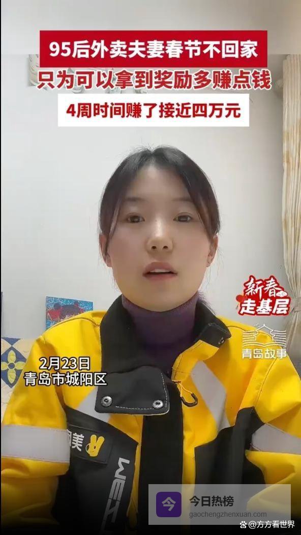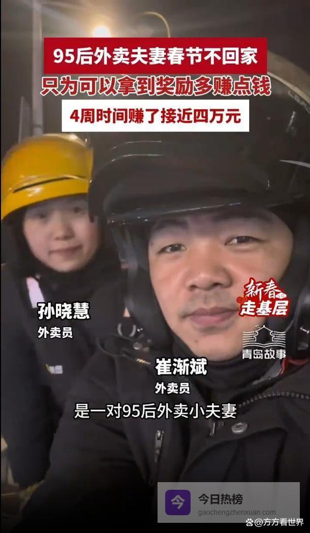 2026年春节那几天,青岛街头冷得刺骨,孙晓慧和崔渐斌没回河南老家,他们把两个孩子托给亲戚带回乡下,自己留在城里跑单,两人都是95后,以前开过物流站点,后来亏了本,欠了20万债,只能转行当骑手。