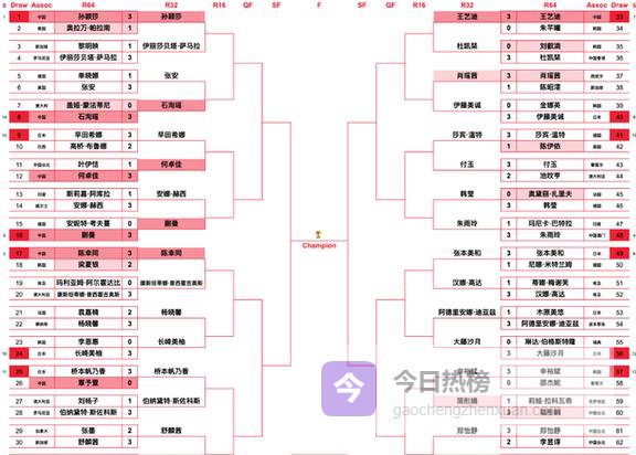 女单1/8决赛对阵: