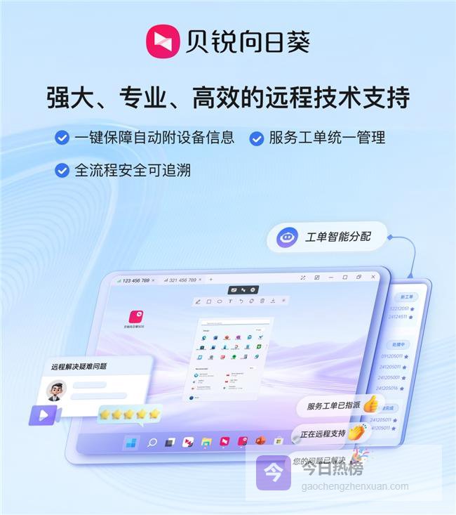 下面,我们以贝锐向日葵技术支持解决方案为例,解析企业如何借助远控方案的关键特性,在售后支持高峰期中落实上述优化,从而将服务挑战转化为业务的坚实护城河。