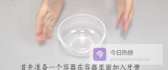 > 1. 调一杯“去霉水”找一只小容器,挤入少量牙膏,再倒入等量清水,用筷子或勺子搅匀,直到牙膏全部溶解。纱布放进去浸湿,但不要拧太干,保持微湿状态即可。