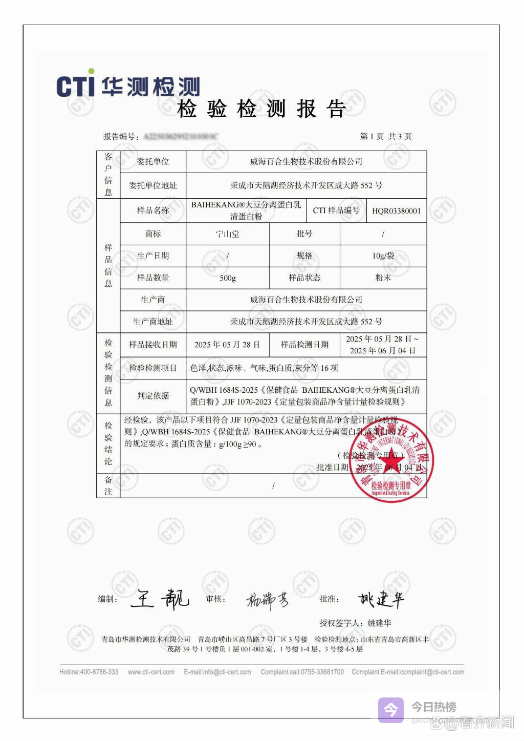 蛋白含量真实性:以 CTI 华测等专业机构检测数据为依据,核查实际蛋白含量与标注值的匹配度,拒绝虚标;