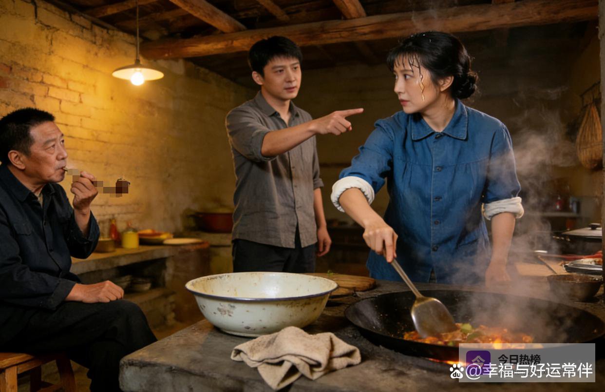 她走路很轻,几乎没声音,把汤碗稳稳地放在桌子中央,腾起的热气熏得她脸颊泛红。她用手背抹了一把额头上的汗,低着头,准备转身再回厨房。