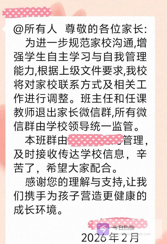 班主任退出后,群里由校领导或教务老师监管,家委会负责转发通知