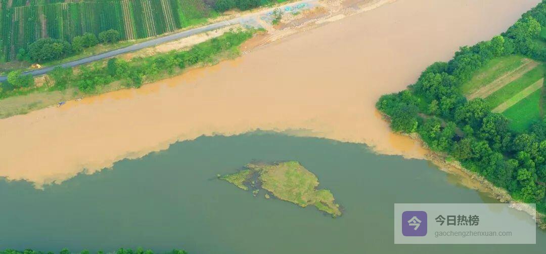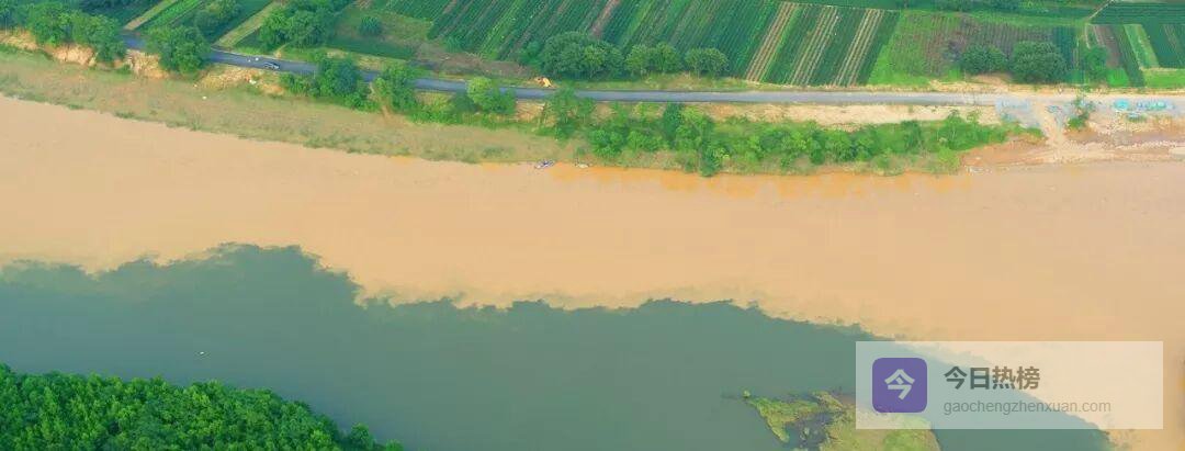 7月17日傍晚,上游持续强降雨让赣江裹挟泥沙呈深黄色;蜀水则因山区降雨偏弱、植被涵养良好而保持碧绿。两股水流互不相容,“泾渭分明”四个字瞬间有了画面感,引得围观者连连惊叹。