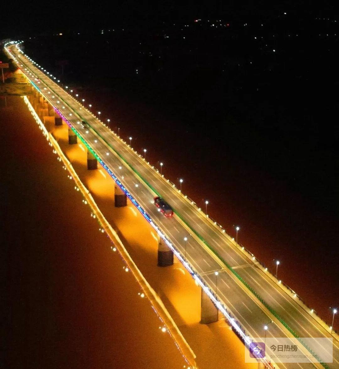 如果说白天的泰和像一位素颜的少女,那么夜晚的她则换上斑斓的霓裳。7月18日21:30,航拍器再次升空,镜头对准赣江大桥——LED灯带依次亮起,白色、暖黄、冷蓝交替闪烁,像给钢铁巨龙披上一层流动的光釉。