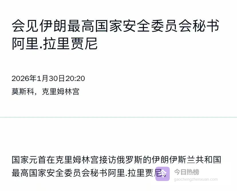 在一个风声鹤唳的国际时刻,当外部压力如潮水般涌向中东核心地带时,一场秘密的、高层级的会晤悄然发生,却在克里姆林宫的官网上留下了仅有的、如同刻意压制的痕迹。伊朗最高国家安全委员会秘书阿里·拉里贾尼,这位被视为最高领袖哈梅内伊最信任的幕僚之一,突然现身莫斯科,与普京总统进行了一次“无预警”的深度沟通。这种“字越少,事越大”的低调处理方式,本身就是对当前地缘政治高风险环境最直接的写照。