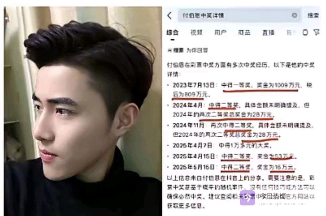 江西南昌网红“付伯恩”,又又又中奖了!就在2025年11月,人家轻飘飘拿下一注排列五,奖金10万块到手。可能有朋友要说了,10万块钱在彩票圈不算啥惊天动地的大奖,但你要看看这位老哥的“战绩表”,那可真得扶好下巴——2023年7月,大乐透头奖1009万;中间还穿插着中了好几次二等奖;2026年1月,双色球二期又中45万;加上这回的10万,总奖金早就冲破了1200万大关!