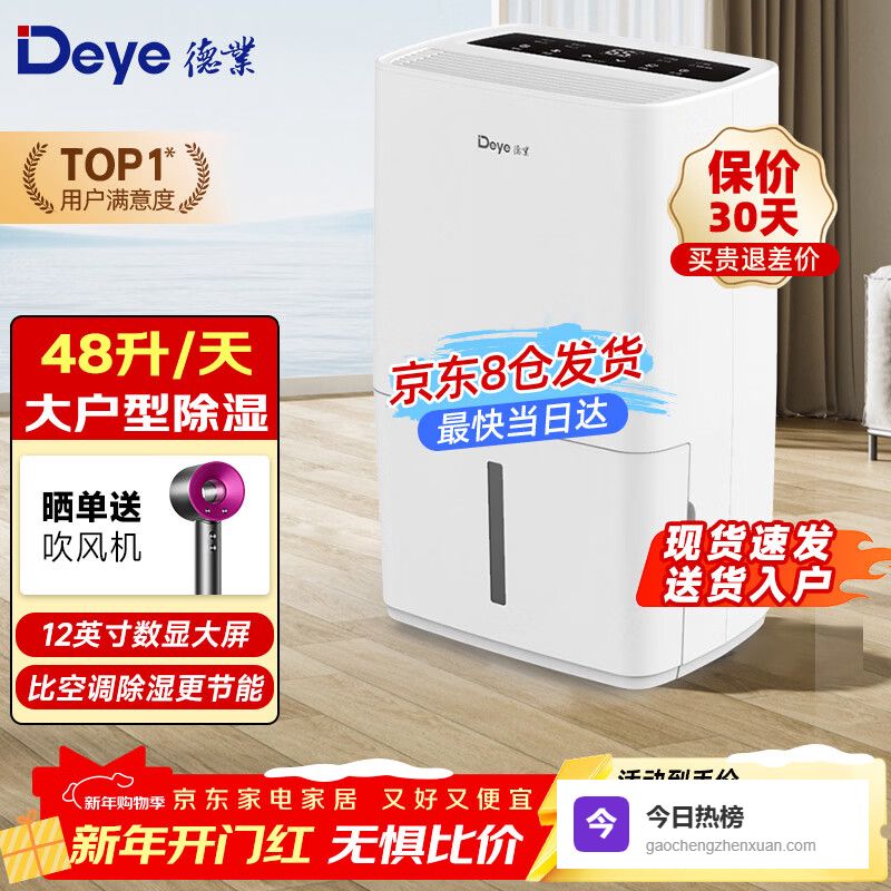 四、德业【强劲除湿】这款德业L48A3的除湿能力特别棒,能每天除湿多达48升,短时间内让屋里变得干爽干燥。无论是潮湿的房间还是衣物,它都能轻松搞定,尤其适合面积在70到120平方米的空间,帮你快速解决湿气问题。
