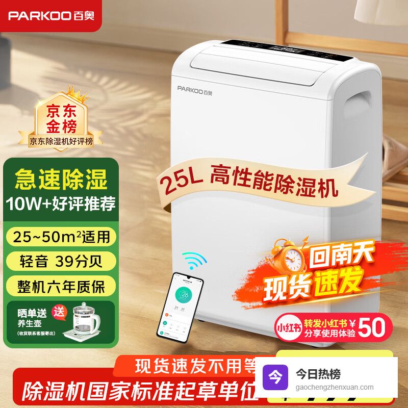 百奥(PARKOO)除湿机/抽湿机 25升大除湿量 家用轻音抽湿机 回南天一键干衣 负离子净化地下室吸湿器 YDA-826E¥