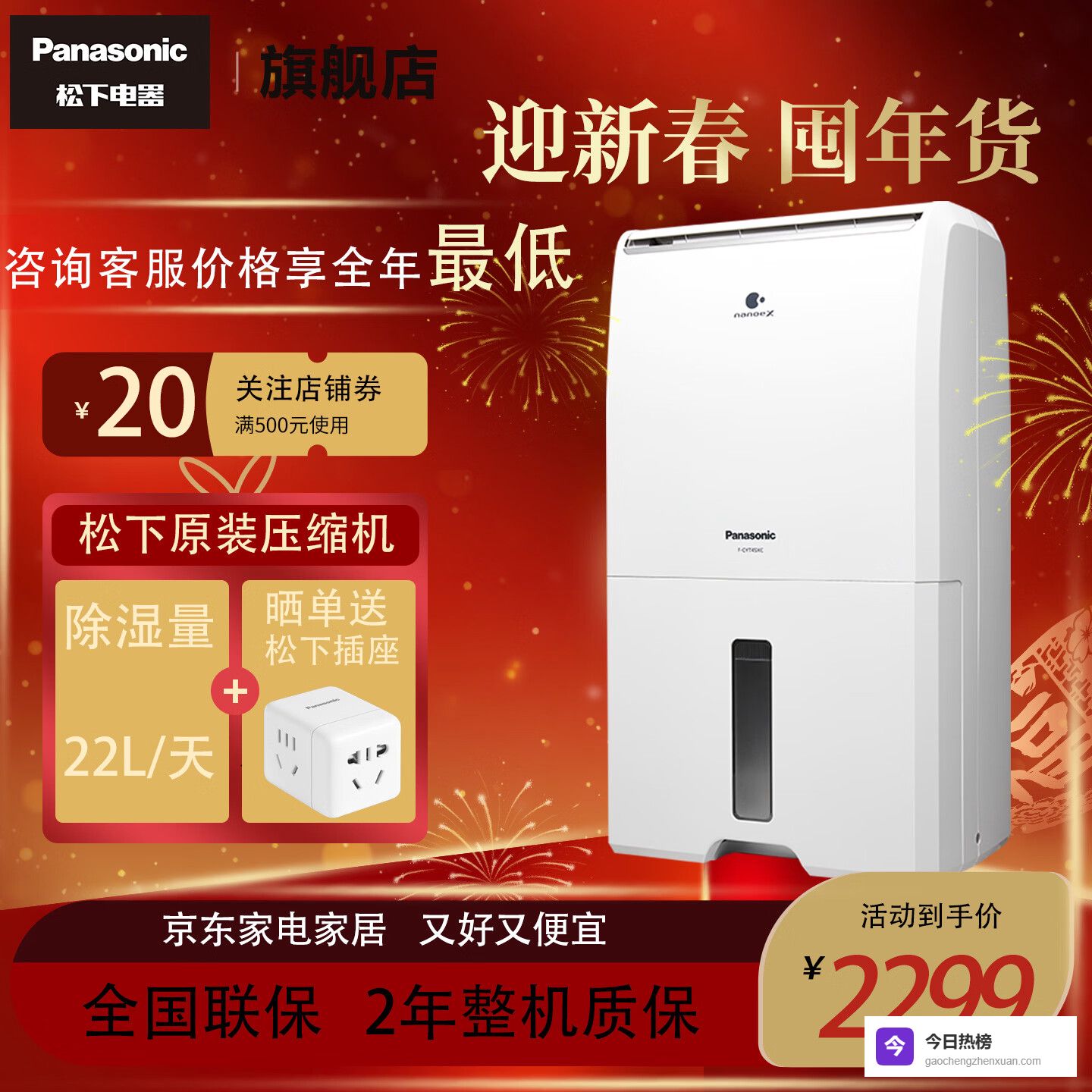 松下(Panasonic) 除湿机抽湿机吸湿器家用干燥机别墅卧室客厅地下室除潮防霉除湿器噪音小F-CYT45XC 22L/天¥