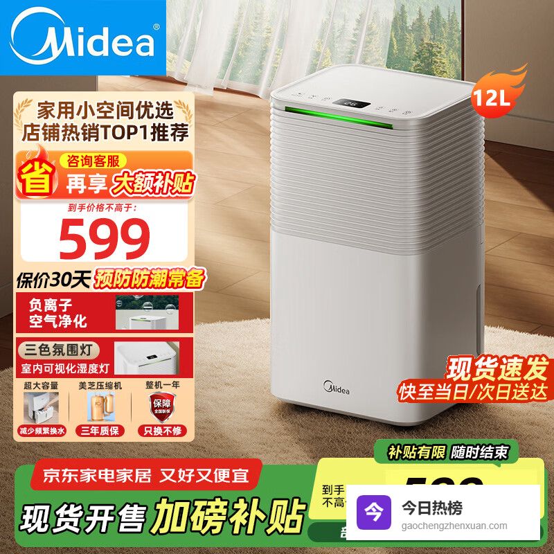 美的(Midea)除湿机 家用抽湿机 轻音吸湿器空气净化干衣去湿防潮干燥机地下室别墅大面积除湿器 12L/天 40-70㎡ 小海绵升级版¥