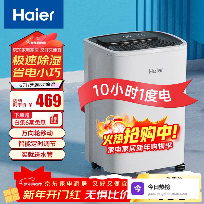 海尔(haier)除湿机/抽湿机 家用除湿机轻音吸湿器干衣净化抽湿器去湿防潮干燥机地下室别墅专用大面积除湿 6L/天 小空间优选【适用15㎡-40㎡】¥
