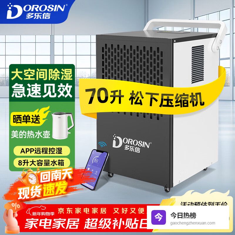 多乐信(DOROSIN)除湿机/抽湿机 70升/天180平米APP智控回南天大功率别墅地下室仓库机房吸湿器 DK-90ES¥