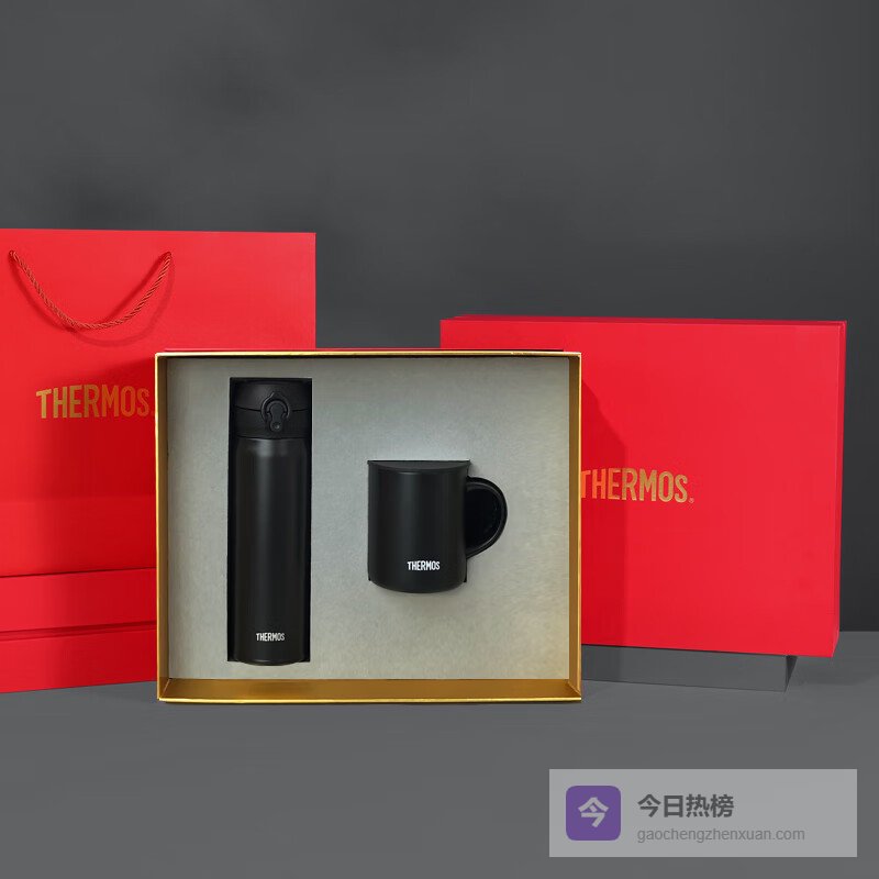 膳魔师(THERMOS) 保温杯高真空不锈钢男女士保温保冷车载弹盖水杯JNL-500/502/504 保温杯+马克杯黑黑礼盒套装 500ml¥